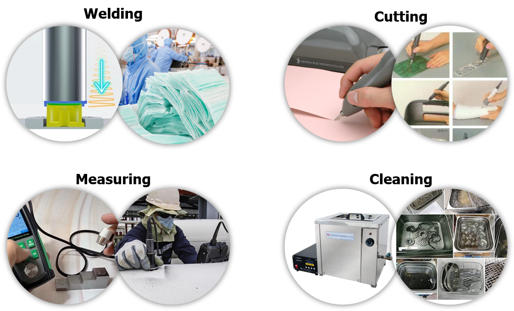 - การเชื่อม (Ultrasonic Welding) : ใช้ความร้อนจากแรงเสียดทานของคลื่นเชื่อมพลาสติกและโลหะ
